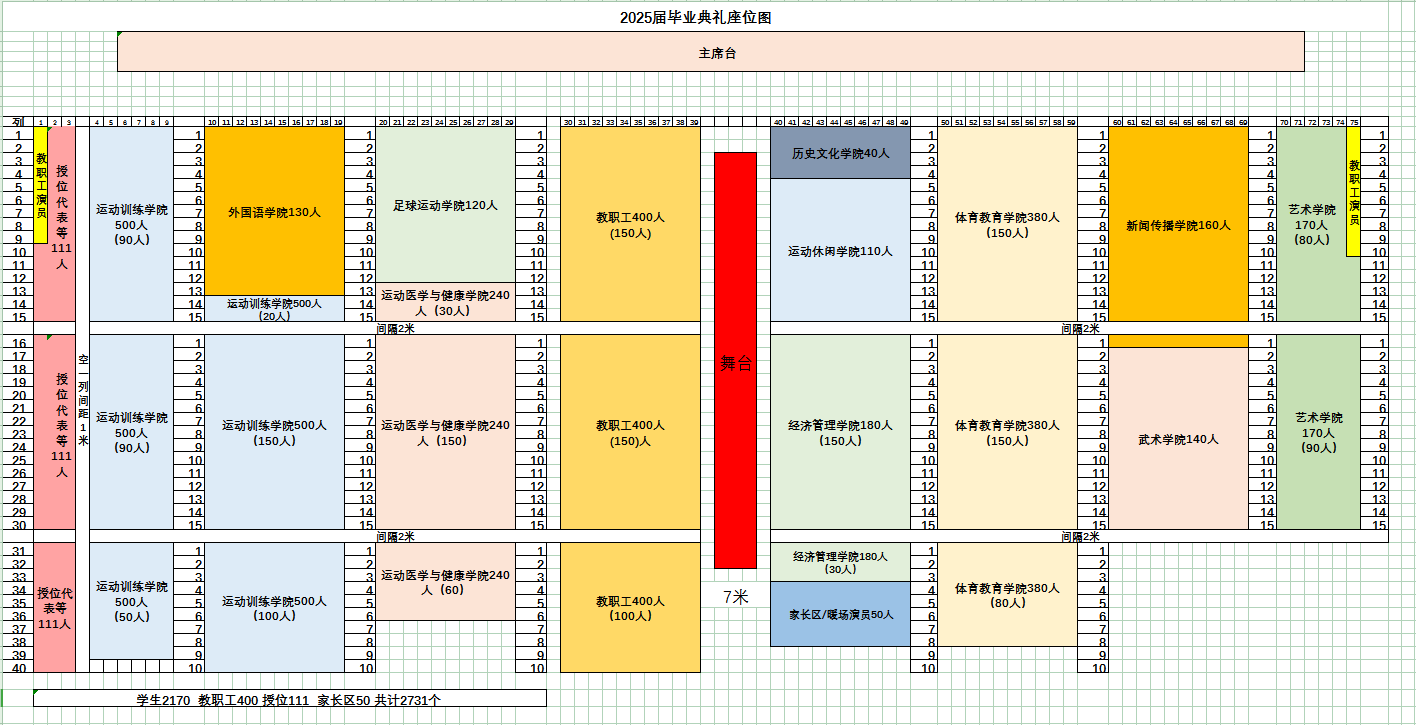 各学院根据“2025届毕业典礼座位图”(见附件)就坐,保持各自区域的清洁卫生,禁止会场喧哗、随意走动。