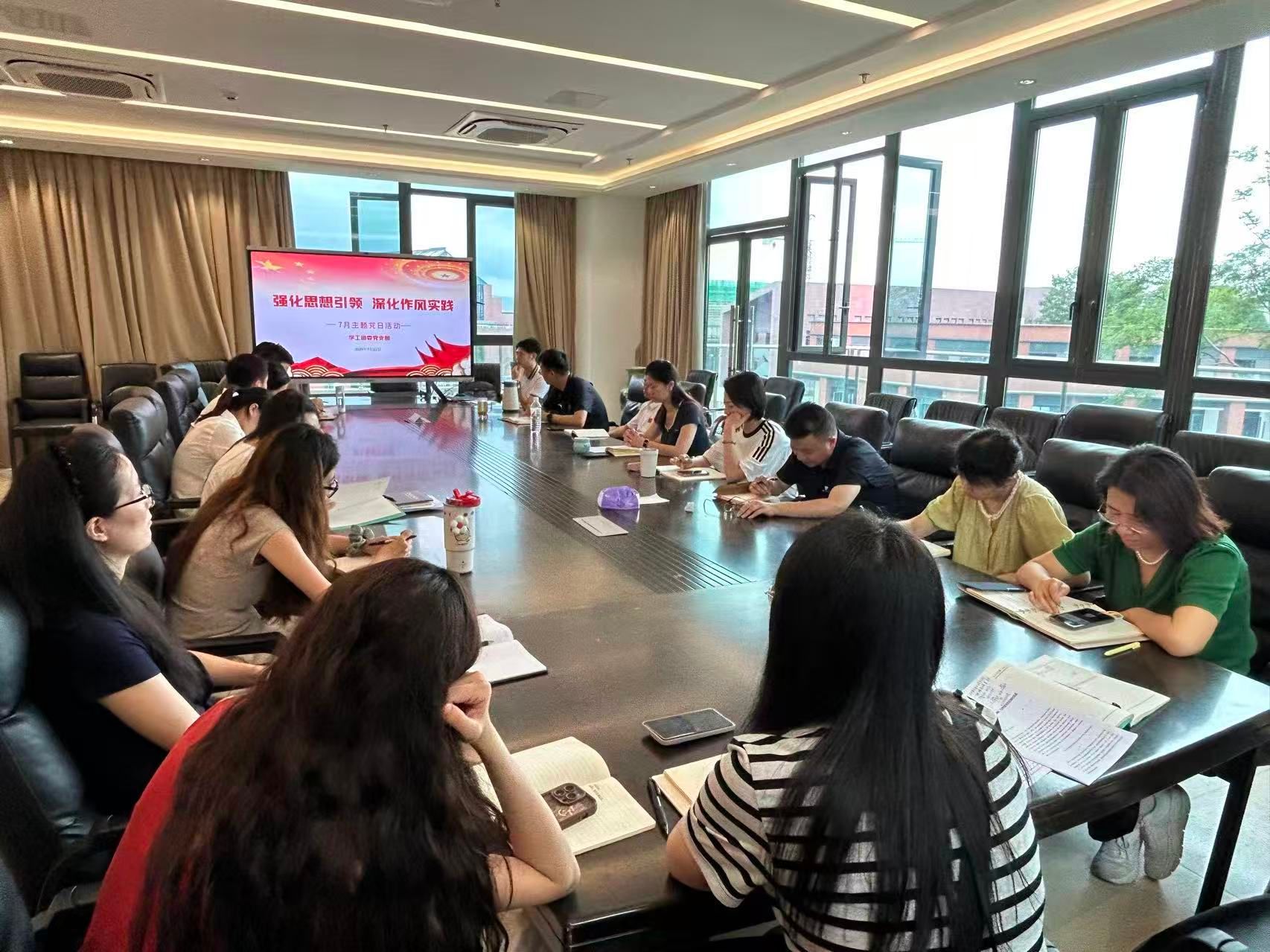 7月11日,党委学生工作部、团委党支部在学生活动中心会议室,以“强化思想引领 深化作风实践”为主题,开展7月主题党日活动,本次活动由党支部书记黄霞同志主持。
